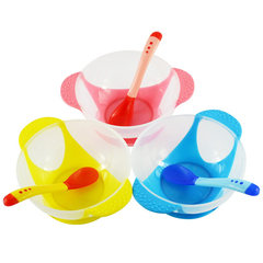 宝宝儿童餐具套装婴儿饭碗吸盘碗软勺子感温辅食碗餐盘筷子不锈钢