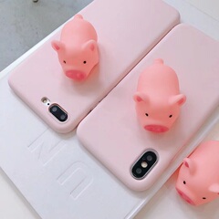 新小猪捏捏乐Phone 7 Plus手机壳卡通支架保护套苹果X软壳发声音