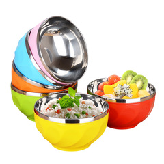 不锈钢碗家用吃饭碗餐具双层防烫大号成人个性面碗食堂隔热儿童碗