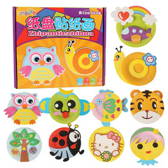 儿童diy纸杯动物贴粘画宝宝幼儿园创意彩色纸盘子手工制作材料包