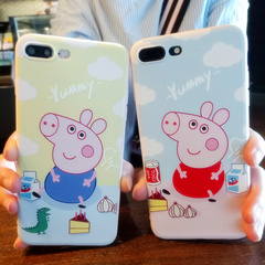 网红小猪佩奇iphone7plus手机壳粉边社会人抖音X苹果6s卡通8plus