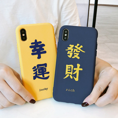 发财幸运iPhoneX手机壳创意文字苹果8p/7plus全包防摔软壳情侣6sp