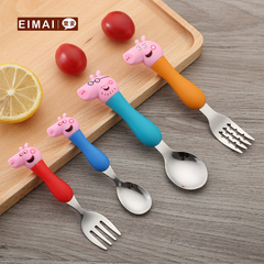 壹麦小猪佩奇叉勺套装勺子创意可爱儿童餐具家用不锈钢卡通小汤勺
