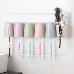 免打孔吸壁式牙刷架套装漱口杯牙刷杯塑料杯牙刷置物架 洗漱套装