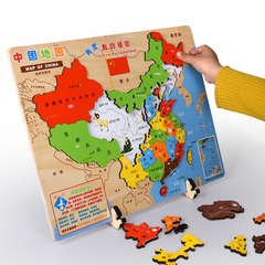 儿童益智中国 世界磁性雕刻地图拼图3-5-6-7-8岁宝宝木质早教玩具