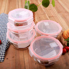 [送餐包]圆形带分隔玻璃饭盒 微波炉保鲜盒 分格便当密封碗带盖