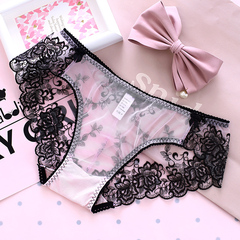 三送一蕾丝性感冰丝低腰网纱透明少女女士三角内裤火辣纯棉档超薄