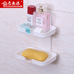 简约强力吸盘双层肥皂盒卫生间挂式多层吸壁式壁挂长方形大号沥水