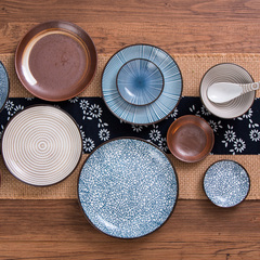 家用创意复古日式陶瓷盘子菜盘圆盘调味碟 米饭碗日式餐具和风系