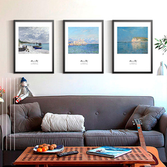 莫奈风景 北欧客厅画遮挡墙壁装饰画酒店宾馆餐厅办公室三联挂画