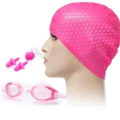 游泳帽+泳镜鼻夹耳塞温泉游泳帽防水男女护发大号硅胶游泳帽套餐