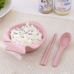 家用小麦秸秆小孩儿童碗筷套装吃饭防摔防烫卡通可爱筷子勺子套装