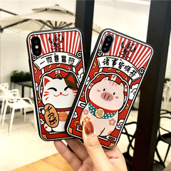 发财暴富诸事顺利iphone8/7plus手机壳6s苹果X/xs max/xr软壳猫猪