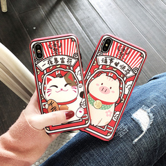新年款红色苹果X手机壳Xs/Max/XR/iphone7plus全包6s女款卡通小猪