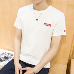 男士圆领短袖T恤 韩版青年潮流纯色修身体恤 白色半袖打底衫夏装t