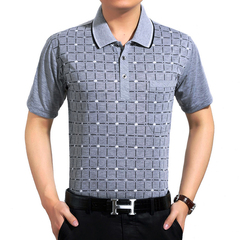 夏装中老年人T恤夏季中年男士短袖T恤格子POLO衫大码男装爸爸装