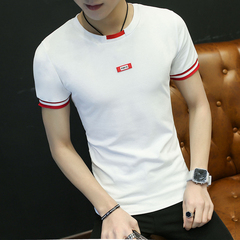 夏季男士短袖T恤圆领纯色体恤打底衫韩版半袖上衣夏装男装黑白潮