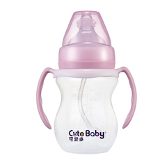 可爱多宽口径PP奶瓶防摔宝宝防胀气奶瓶吸管带手柄宝宝塑料奶瓶