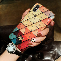 七彩菱形苹果XR手机壳女xsmax潮牌网红7plus硅胶套软壳6s欧美时尚iPhone8p高档8X全包防摔xs个性创意金箔亮片