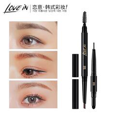 恋意三头眉笔防水防汗不脱色持久一字眉初学者不晕染不脱色带眉刷
