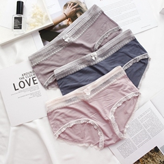 轻薄透气柔软莫代尔面料弹力少女内裤蕾丝边中腰包臀三角女士内裤