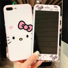 苹果6s全屏钢化膜8p手机壳iPhone7plus卡通贴膜kitty猫6p玻璃彩膜