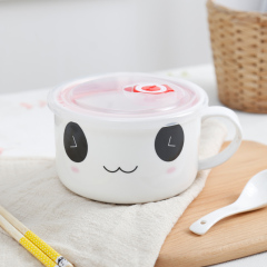 创意学生韩式卡通可爱陶瓷餐具泡面碗套装大号陶瓷碗带盖方便面碗
