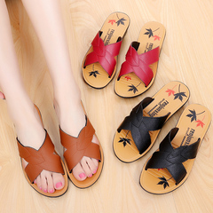 妈妈拖鞋女夏2019新款软底中老年外穿平跟凉拖女平底舒适老人鞋女