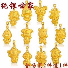 纯银镀3D硬金十二生肖黄金吊坠项链鼠牛虎兔龙蛇马羊猴鸡狗猪包邮