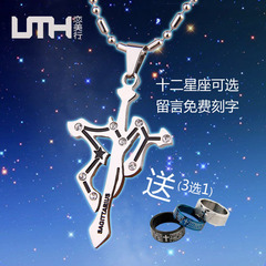 十二星座项链男士钛钢十字架吊坠韩版时尚潮男生挂坠个性饰品刻字